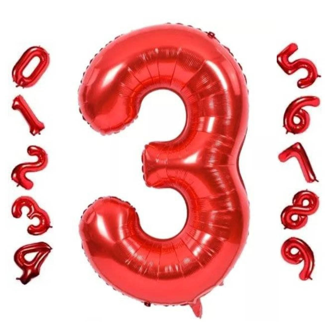 Фольгированная цифра 3 размер 100см | Красный