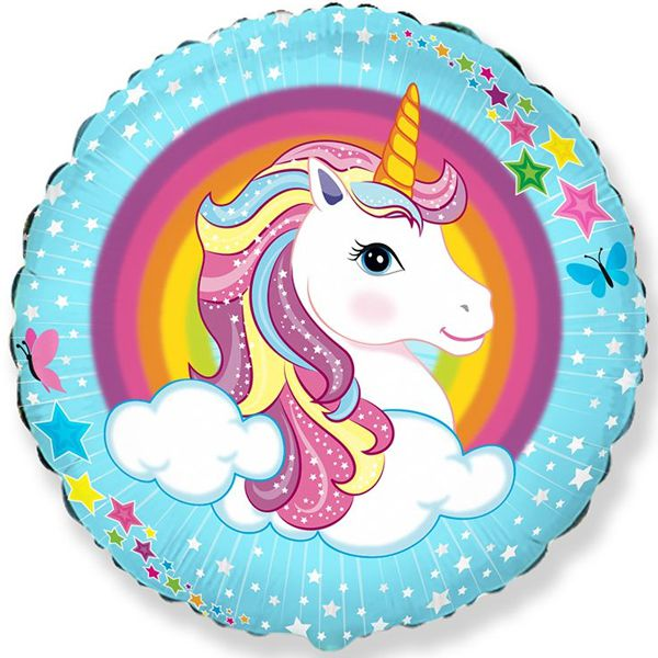 Фольгированный шарик Flexmetal 18" Круг Единорог радужный, Разные цвета