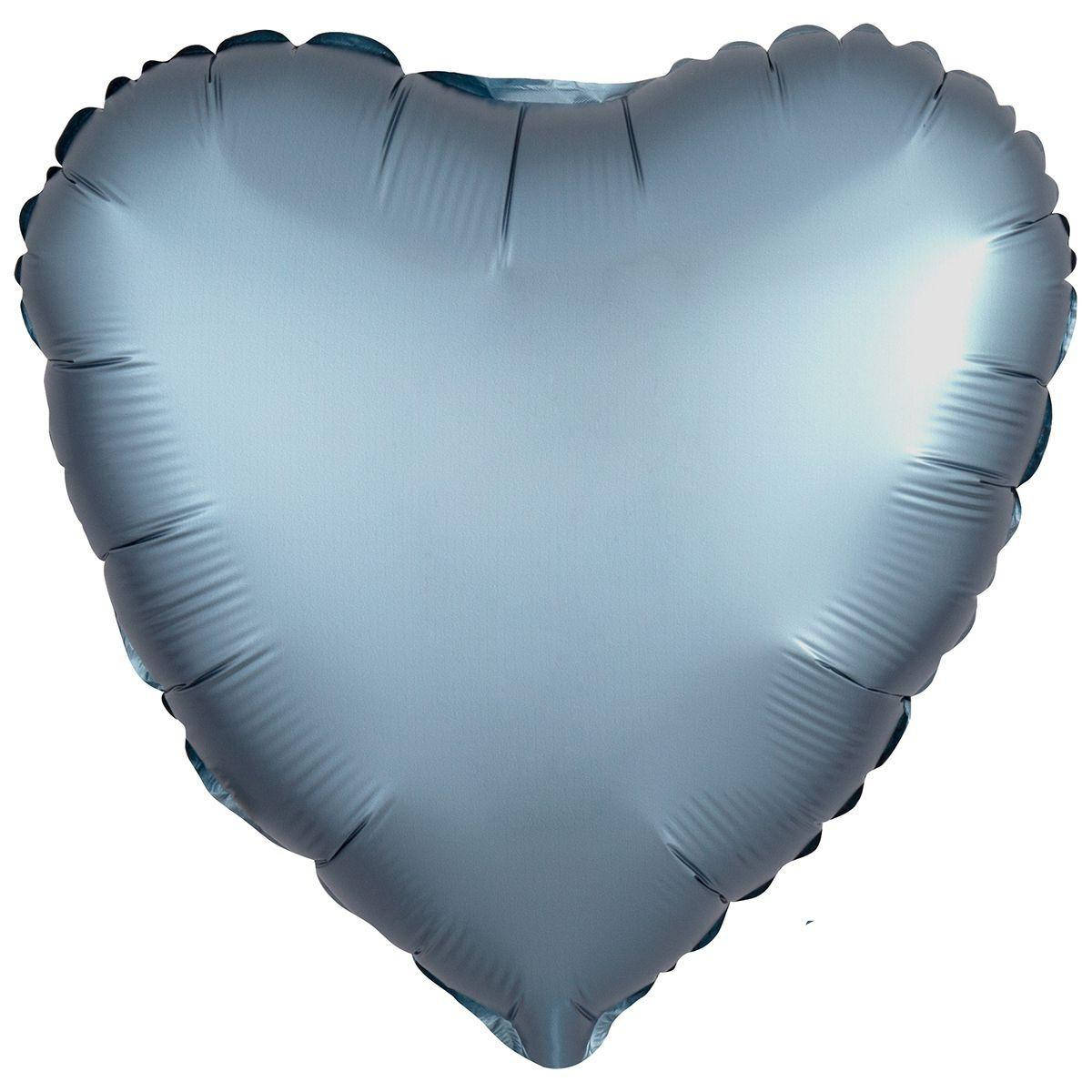 Однотонный шар из фольги в форме сердца оттенка сатин цвета синяя сталь.