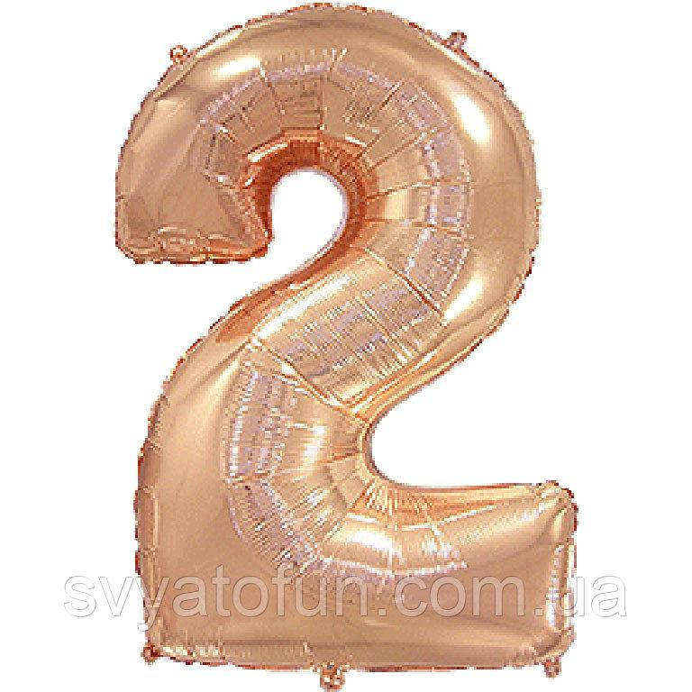 Фольгированный шар цифра "2" розовое золото 40" Flexmetal