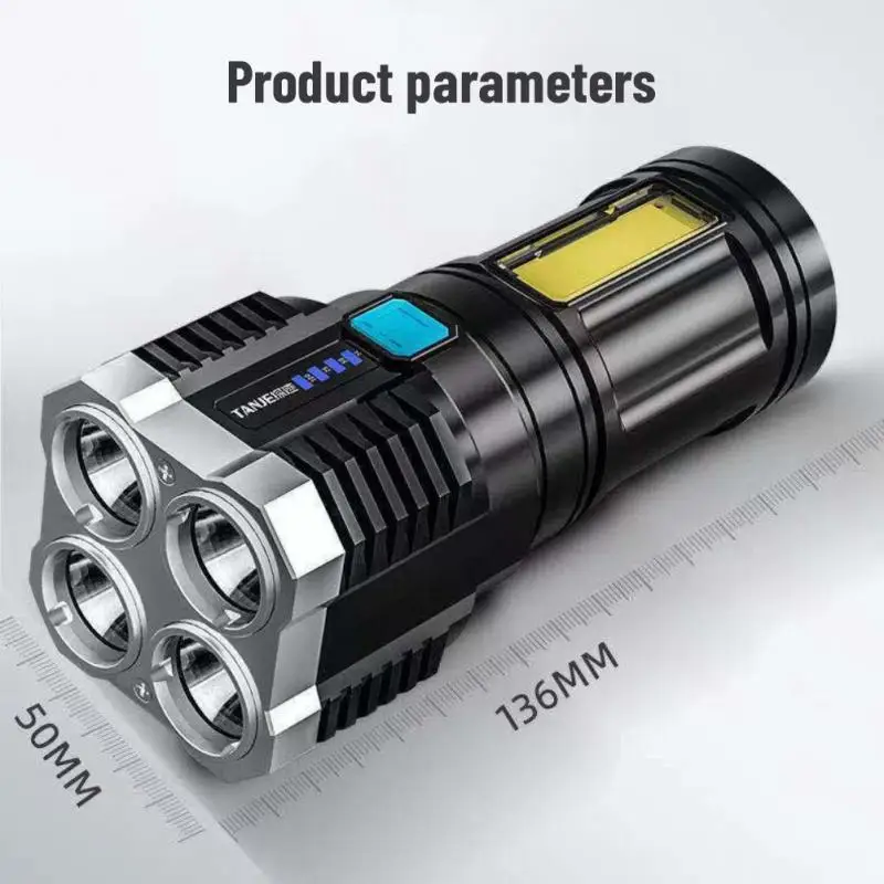 Фонарик светодиодный COB, яркий внешний портативный USB-фонарик для дома с дисплеем мощности