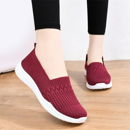 sebulube Fashion Summer And Autumn Women Sneakers Flat Mesh Breathable Solid Color Slip On Comfortable Casual
