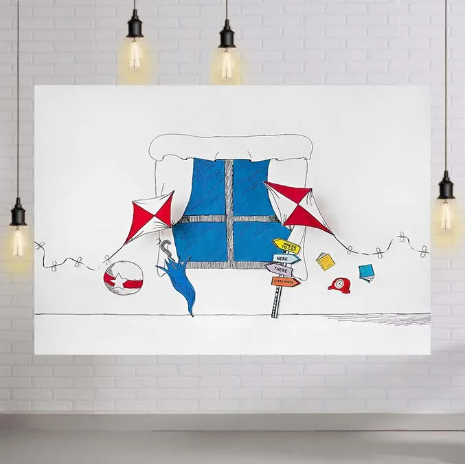 Фон для студийной фотосъемки новорожденных детей с изображением солнца облаков воздушного змея
