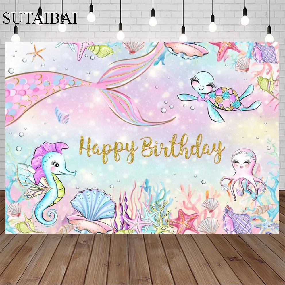 Фон для студийной фотосъемки с изображением русалки на день рождения