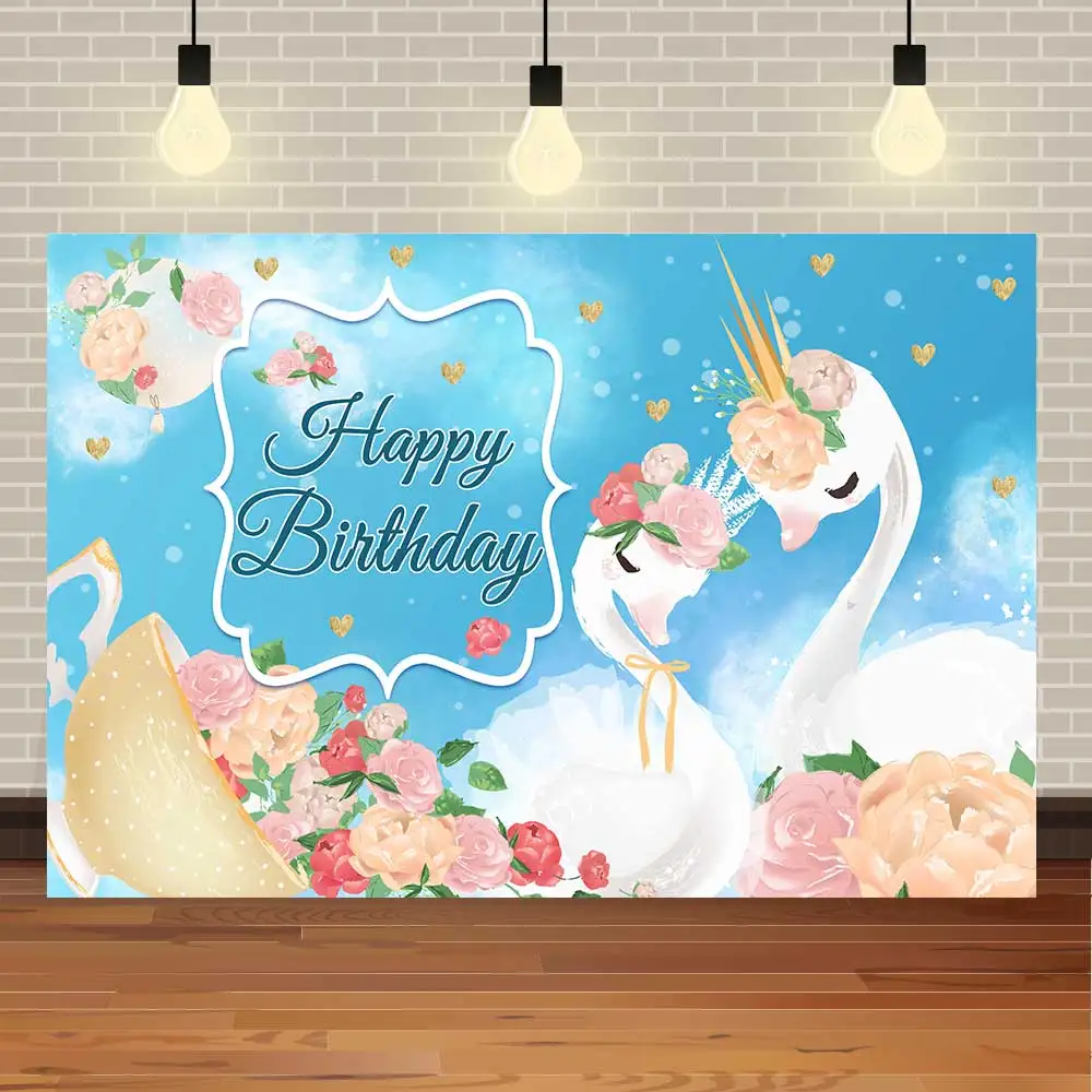 Фон для фотографирования новорожденных с изображением белого лебедя