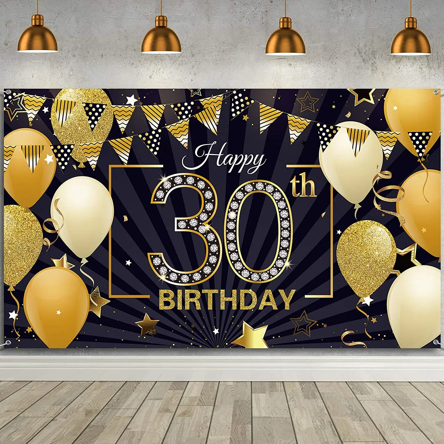 Фон для фотосъемки, баннер, очень большой черный и золотой, с днем рождения, фотобудка, декорация, баннер