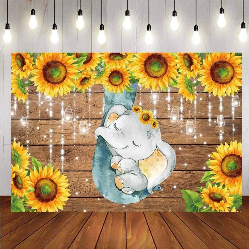 Фон для фотосъемки в стиле ретро с изображением подсолнуха слона деревянного пола детского дня рождения