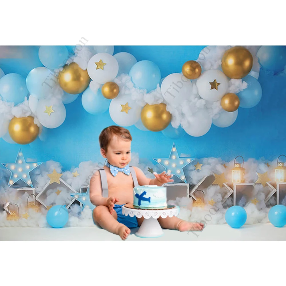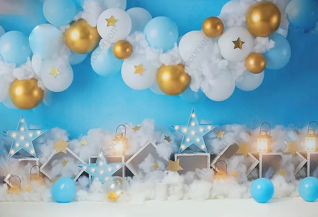 Фон для фотосъемки новорожденных с изображением голубого неба и белых облаков