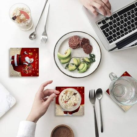 KXMDXA Christmas Santa Set of 6 Coaster for Drinks Absorbent Ceramic Stone Coasters Cup Mat with Cork Base for Home Kitchen Room Coffee Table Bar Decor