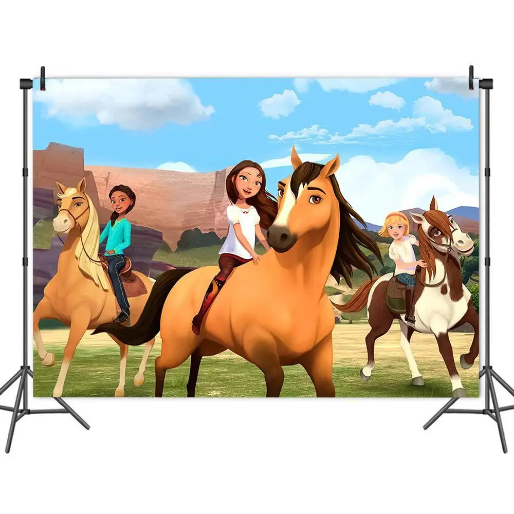 Фон для фотосъемки с изображением героев мультфильмов пони девочки духа езды счастливечерние декорация для детского дня рождения
