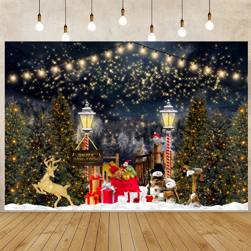 Фон для фотосъемки с изображением лесных деревьев и рождественских оленей