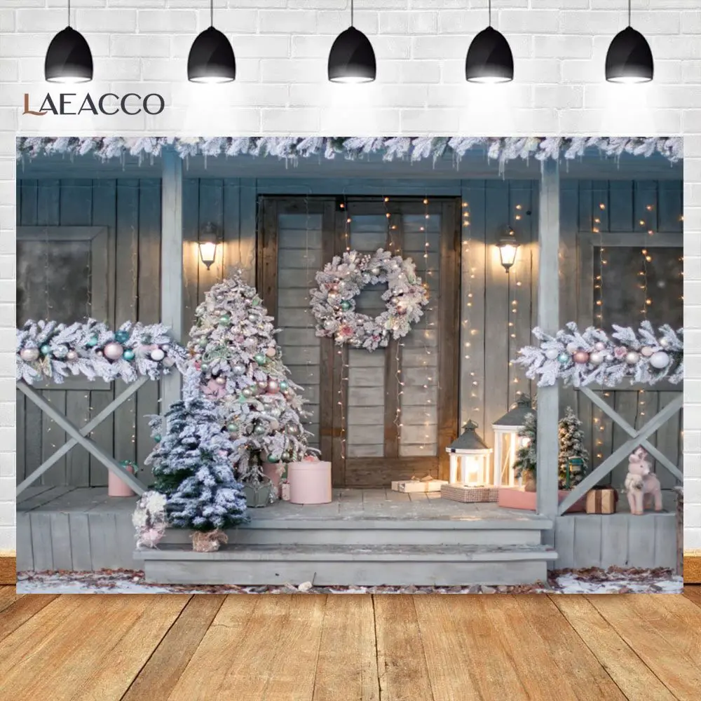 Фон для фотосъемки с изображением рождественской елки в стиле старого дома и деревянной доски