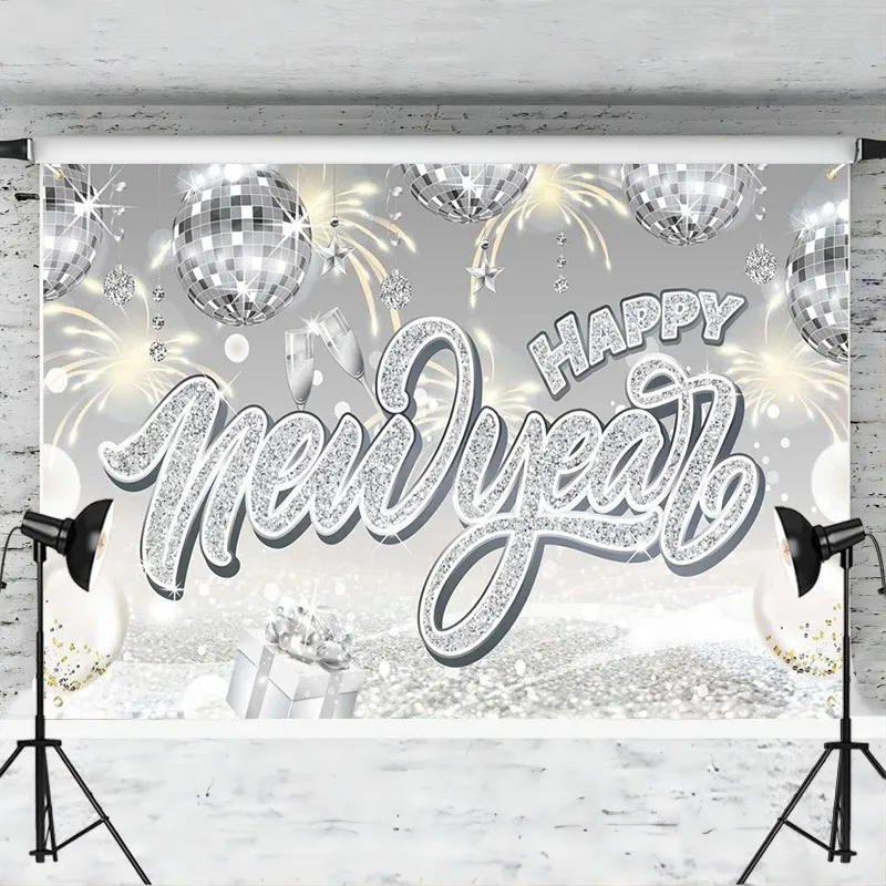Фон для фотосъемки с новым годом баннер Серебряный Блестящий Фон для фотосъемки аксессуары для фотостудии