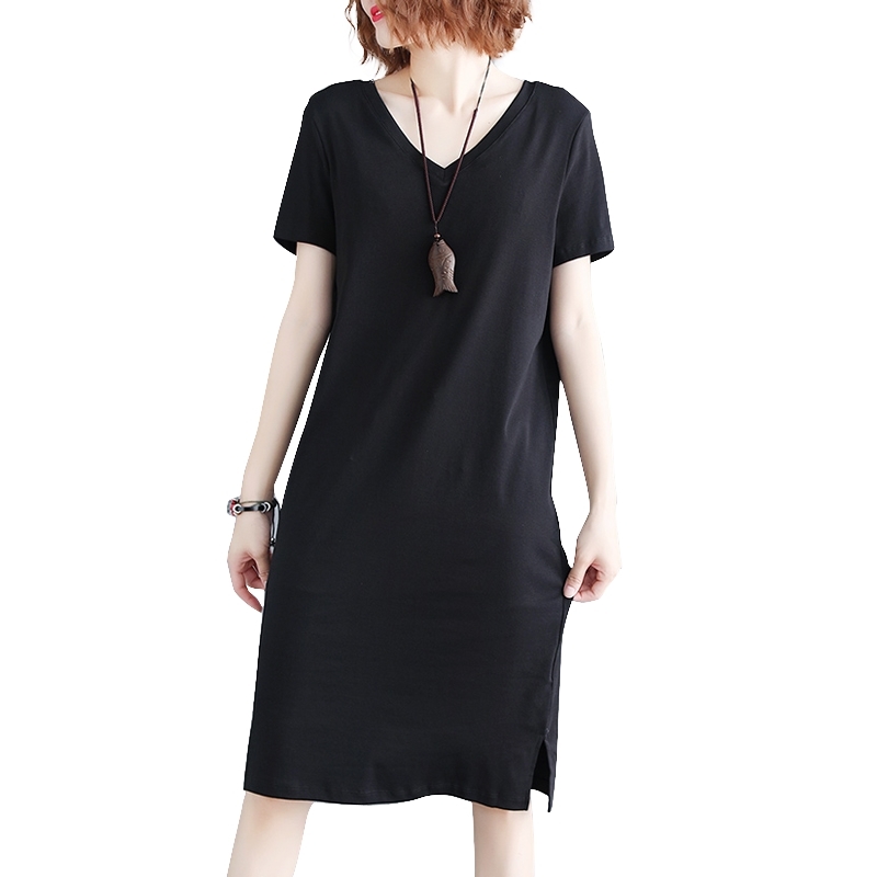 WERUERUYU European and American short-sleeved large size V-neck solid color dress explosion models women's 210608, Photo color
