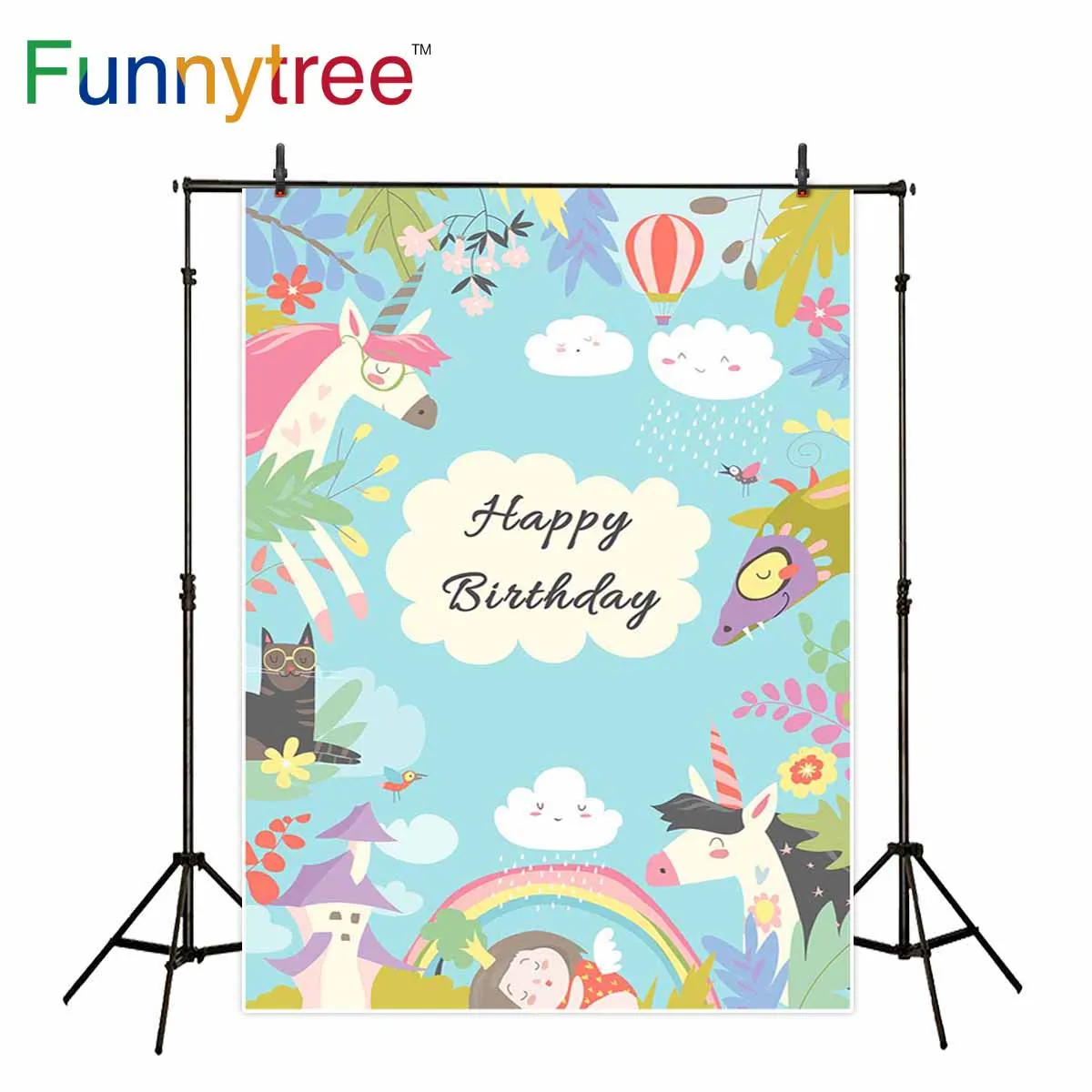 Фон Funnytree для фотостудии единорог мультфильм Радуга облако день рождения животное дети фон для фотосъемки с принтом