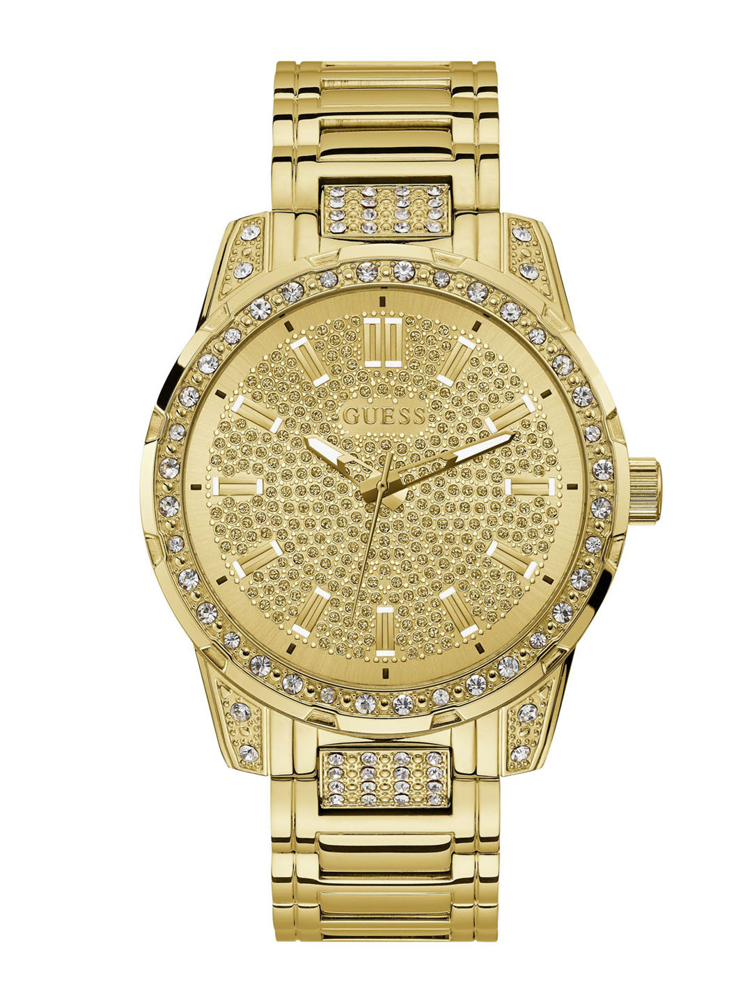 GUESS Men Embellished Dial Stainless Steel Bracelet Style Straps Analogue Watch U1339G2M, Gold