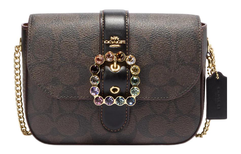Сумка через плечо Gemma из лакированного холста с гладкой кожей Trumpets для женщин, темно-коричневая COACH