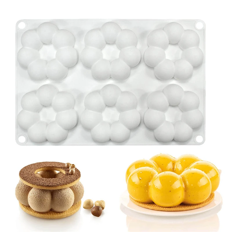 Форма для торта, 6 цветочных пончиков, силиконовая форма для шоколада, выпечки хлеба, антипригарная форма для выпечки «сделай сам», поднос для выпечки, Пончик, десерт