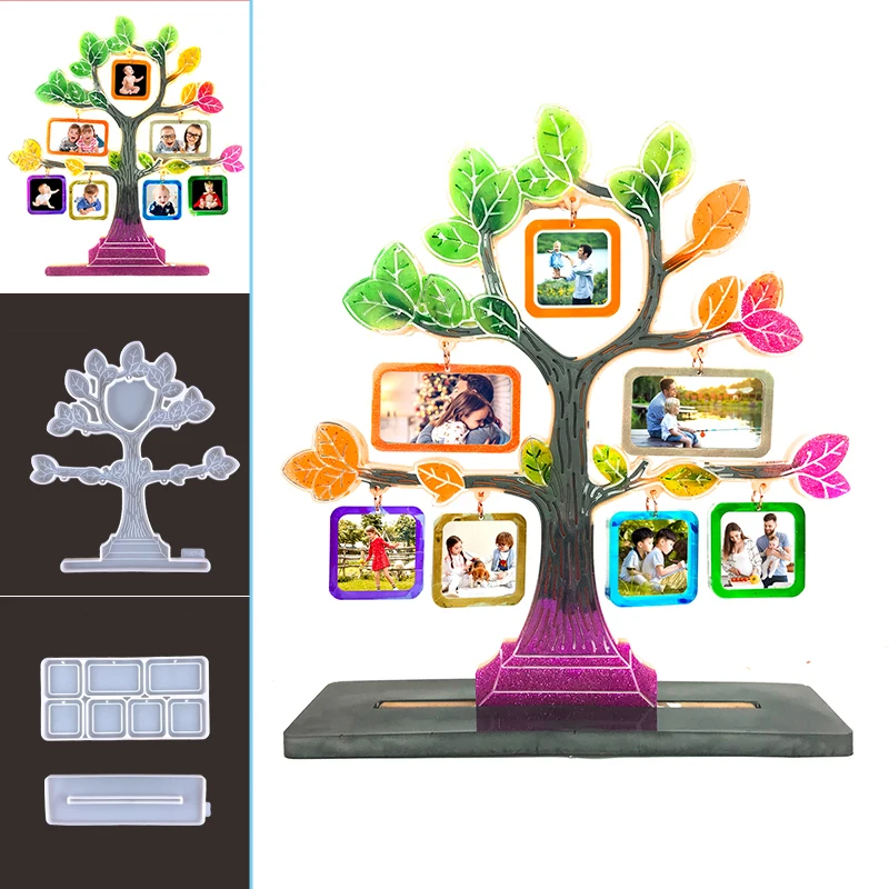 Форма для фоторамки с большим деревом, искусственная силиконовая форма для фоторамки в виде дерева с кристаллами, праздничный подарок, иску...