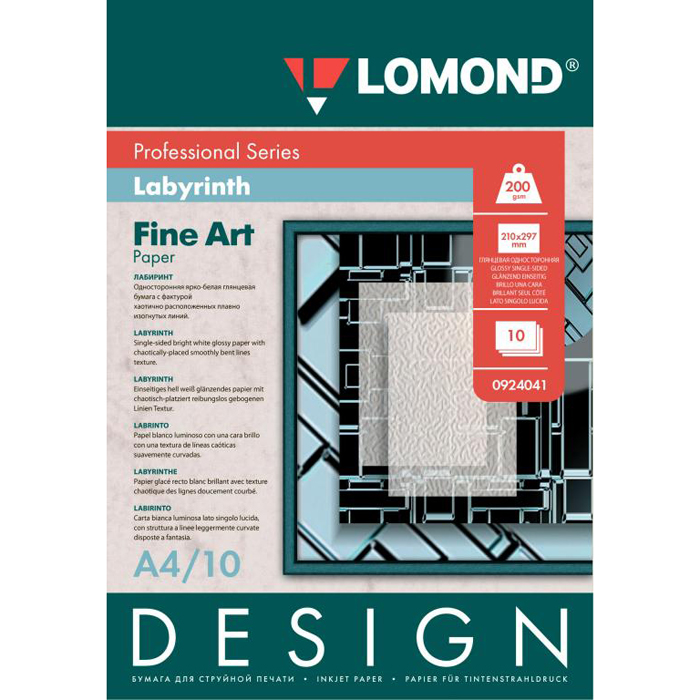 Фотобумага дизайнерская A4 200г/м2 глянцевая, 10 листов, односторонняя, Lomond Лабиринт/0924041 для струйной печати, Белый, Лабиринт