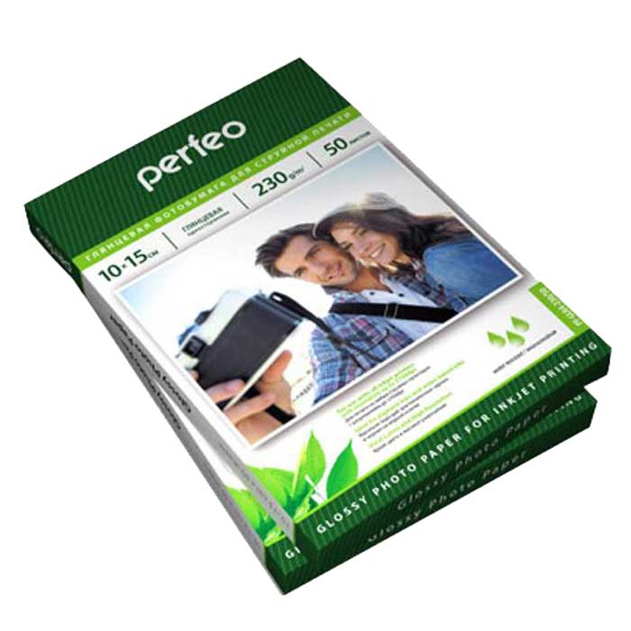 Фотобумага 10x15 230г/м2 глянцевая, 500 листов, односторонняя, Perfeo для струйной печати, Белый
