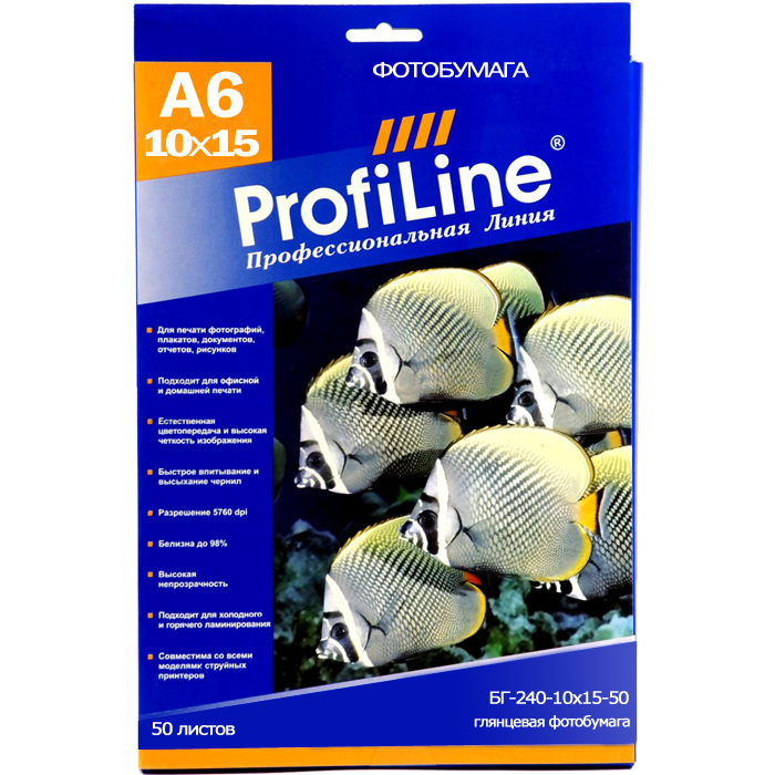 Фотобумага 10x15 240 г/м² глянцевая, 50 листов, односторонняя, ProfiLine БГ-240-10x15-50 для струйной печати, Белый