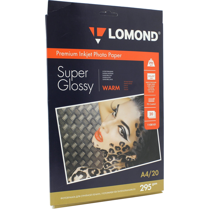 Фотобумага A4 295г/м2 суперглянцевая, 20 листов, односторонняя, Lomond 1108101 для струйной печати, Белый