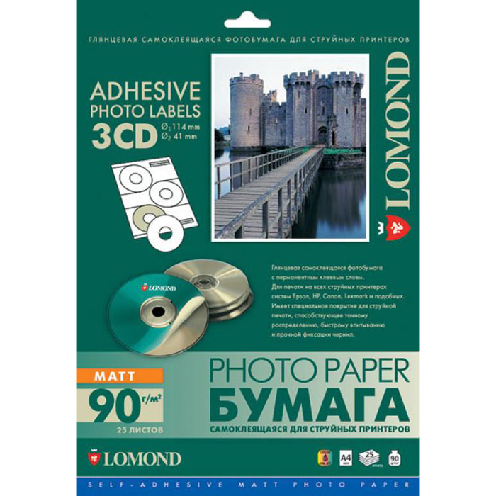 Фотобумага A4 90г/м2 матовая, 25 листов, односторонняя, Lomond 3 части/2211023 для струйной печати, Белый, 3 части