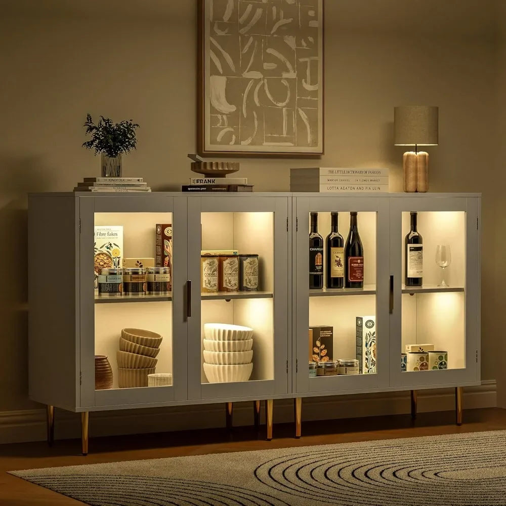 Фотобуфет с 4 дверями, фотообои, кофейные фотообои с золотыми ручками для кухни, белый цвет