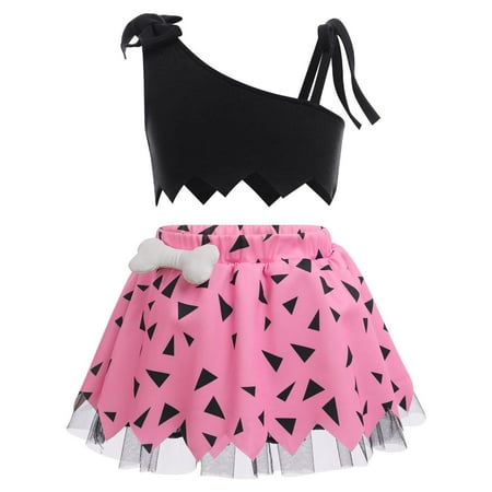 TJAZFJPA Italian Summer Outfits Toddler Kids Caveman Girls Dog Bones Historical Cavegirl Vest Tops Mesh Tulle Skirts Princess Outfits Newborn Outfit Girl Butterfly Newborn Girl Outfits Photoshoot Lace