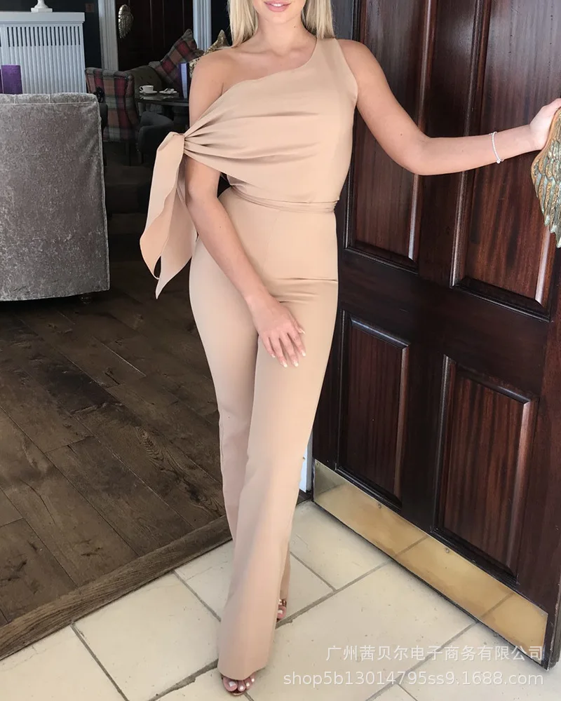 Women Long Jumpsuit Full Length New Khaki One-Shoulder Strap Tight High Waist Solid Color Fashion Casual Jumpsuit Pants