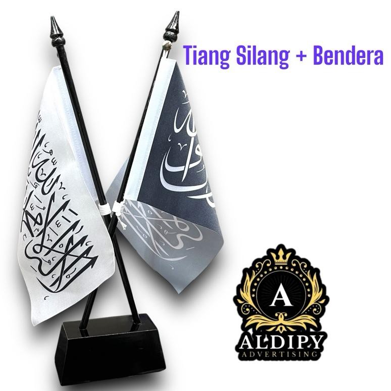 Tiang Kayu Meja Silang + Bendera Al-liwa dan Ar-rayah Ready Stok Berkualitas AST