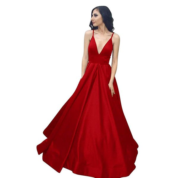 2020 глубокий v шеи бретельках линии длинные платья невесты упругие шелковый как атласная зашнуровать пром платья, White;pink