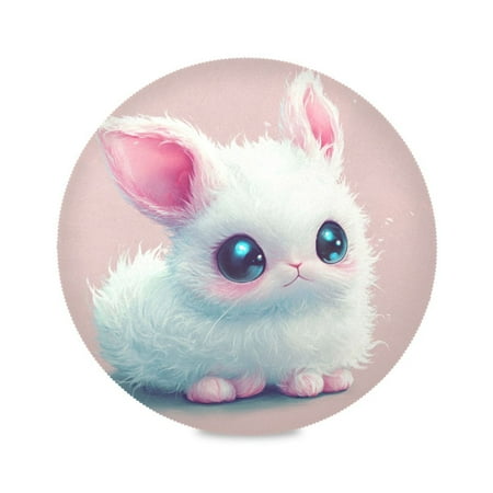 Round Plate Mat 15.4x15.4 Inchesx4 Placemat Table Mat Kitchen Mat Coffee Mat Fabric Thick Strong Wear-Resistant Heat Resistance Cute Pink Eared Bunny