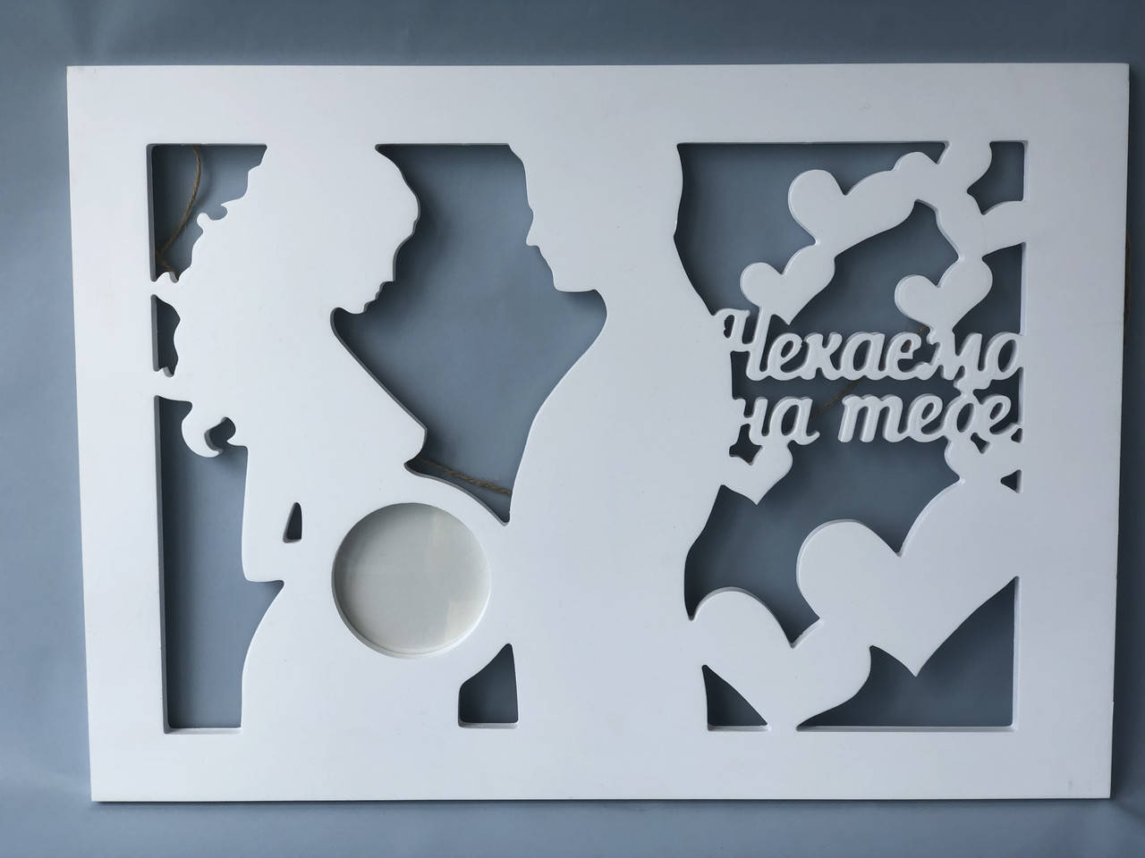 Основание деревянной фанеры толщиной 1 см. Размер 50*36см. Диаметр фотографии 8см.