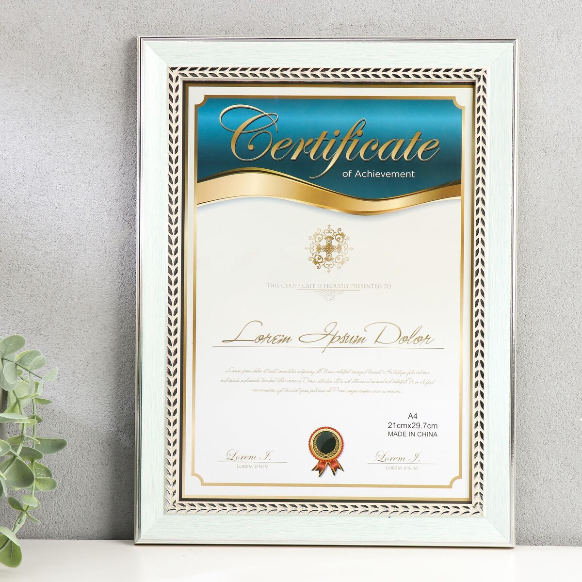 Фоторамка пластик формат А4 "Нежно-голубая с серебристой косичкой" 34,8х25,5 см.