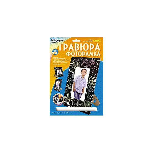 Гравюра - особый вид графического искусства. Сцарапывая верхний слой гравюры специальным штихелем, входящим в набор, ребёнок создает свою картину. Готовая фоторамка-гравюра с голографическим эффектом и изображением морских обитателей будет отлично смотреться на стене или письменном столе или сможет стать памятным сувениром, сделанным своими руками.
