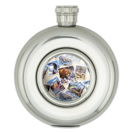 Rockies Mountain Life Fishing Bear Eagle Pattern Round Stainless Steel 5oz Hip Drink Flask