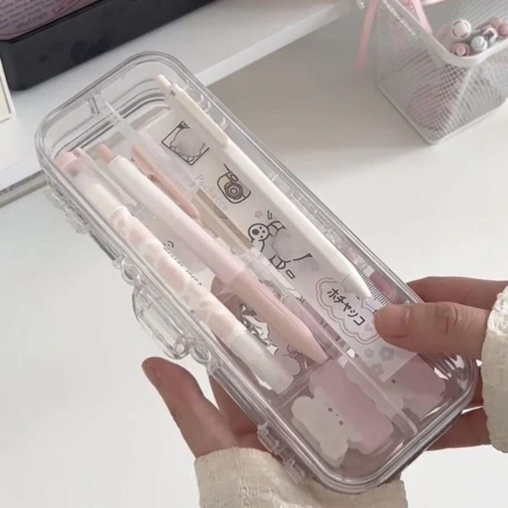 Прозрачный органайзер для канцелярских принадлежностей, акриловая коробка для ручек с линейкой, пенал для студентов чёрный