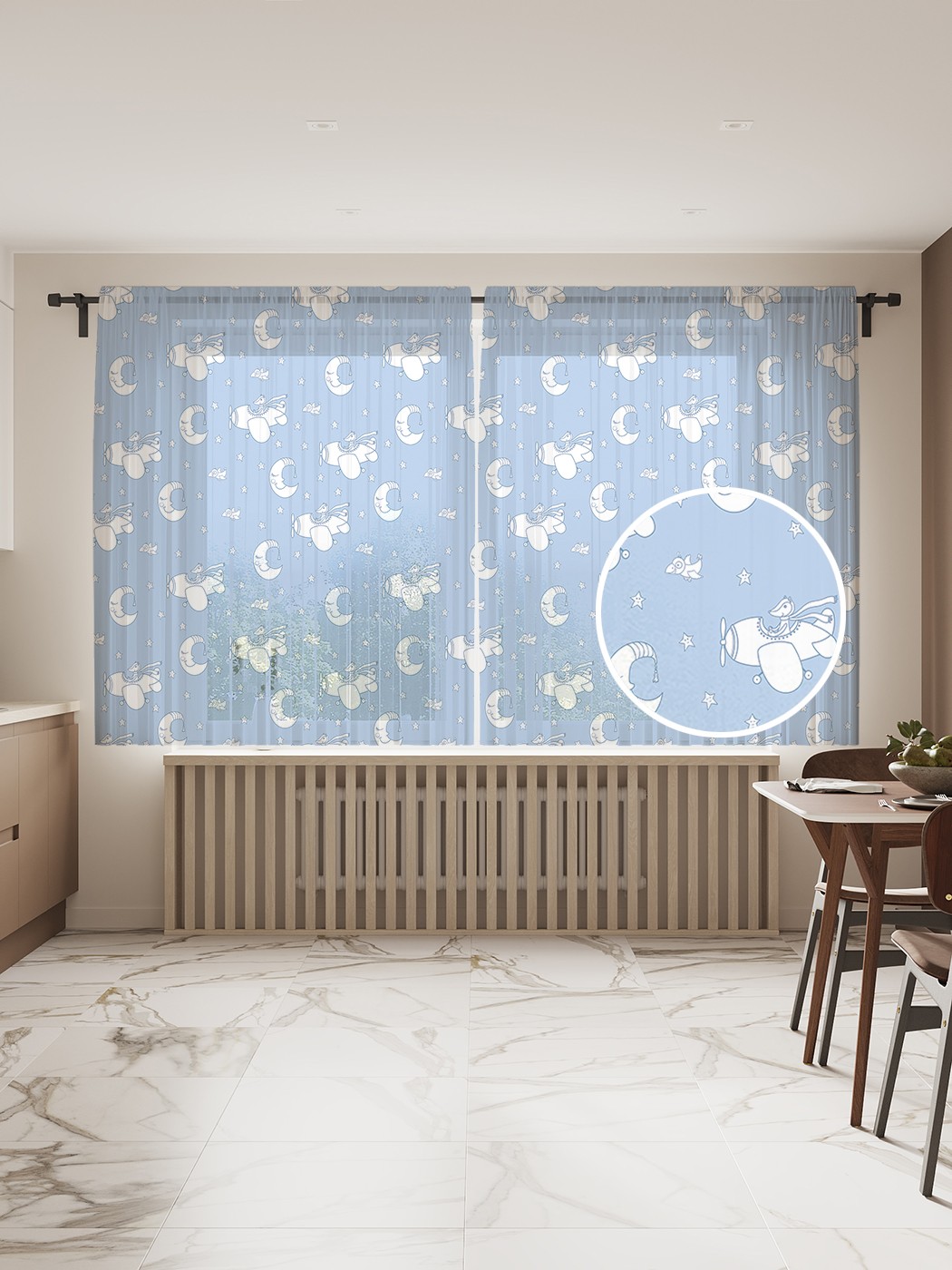Фототюль JoyArty "На самолете к луне" 145x180см (2 полотна со шторной лентой + 50 крючков), На самолете к луне