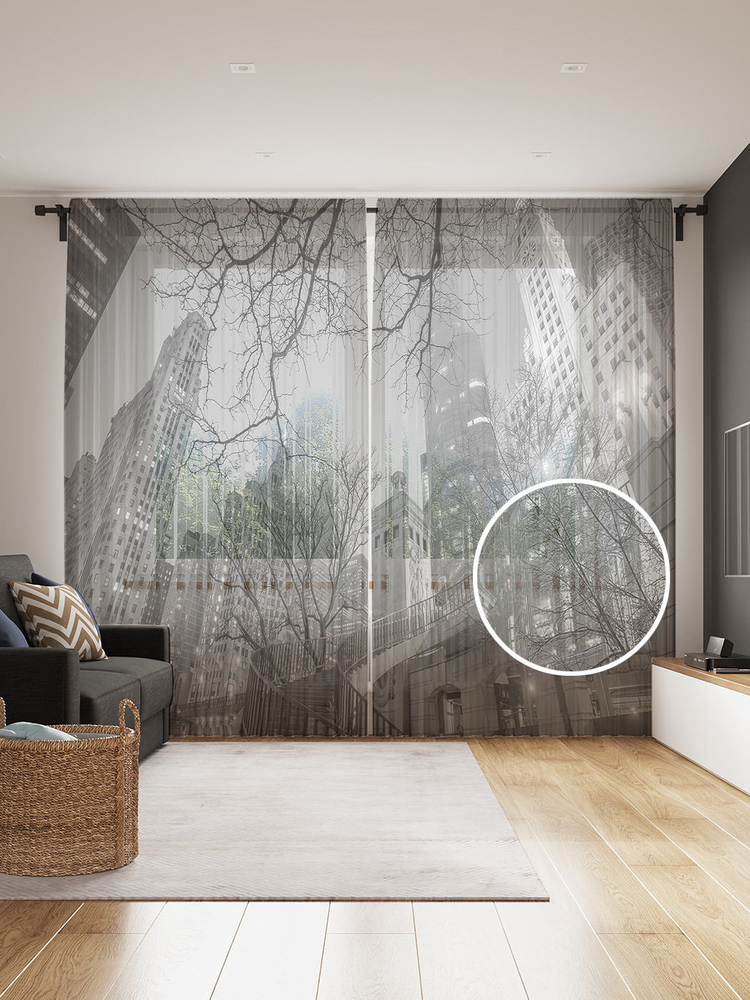 Комплектация: два полотна 145х265 см., крючки – 50 шт. Материал: фатин (сетчатое полотно). Плотность: 54 гр/кв.м. Тюль с фотопечатью способен преобразить и украсить интерьер вашего дома. Изделие изготовлено из прочных волокон 100% полиэстера, отлично держит форму, легко гладится, не дает усадки и не растягивается при длительной эксплуатации. Тюль уже готов к использованию, возможно крепление на трубу или крючки, идущие в комплекте в количестве 50 шт. Благодаря широкому ассортименту фотопринтов, вы легко сможете подобрать тюль для кухни, спальни, детской комнаты или гостиной. Обращаем внимание, что из-за особенностей производства яркость рисунка может отличаться от изображения на сайте. Допустимо отклонение в размерах полотна в пределах 5 см.