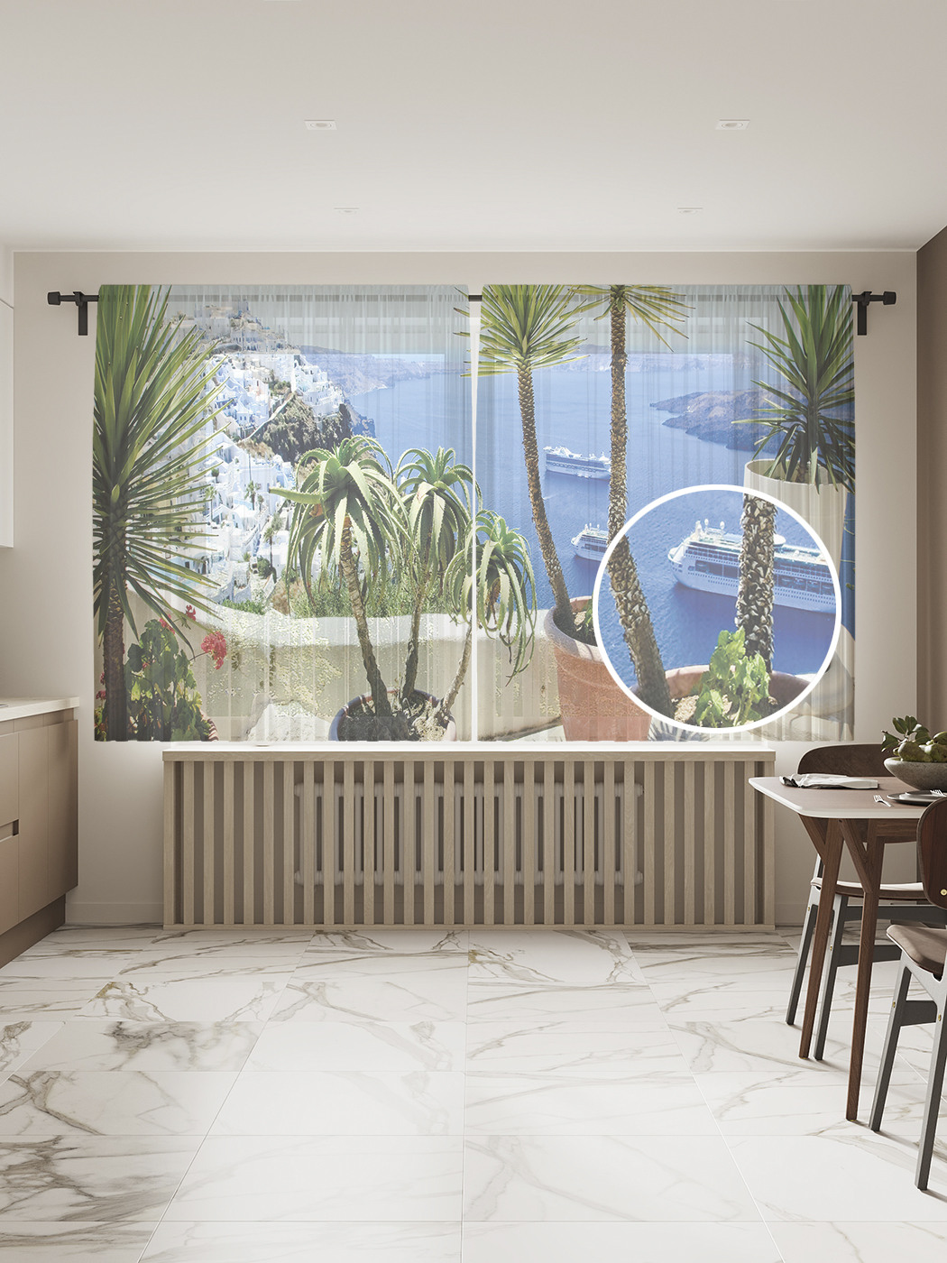 Фототюль JoyArty "Пальмы в горшках", 145x180 см (2 полотна со шторной лентой + 50 крючков), Пальмы в горшках