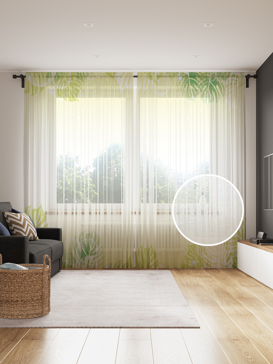 Фототюль JoyArty "Рамка листьев монстеры" 145x265см, 2 полотна, лента, 50 крючков, Рамка листьев монстеры