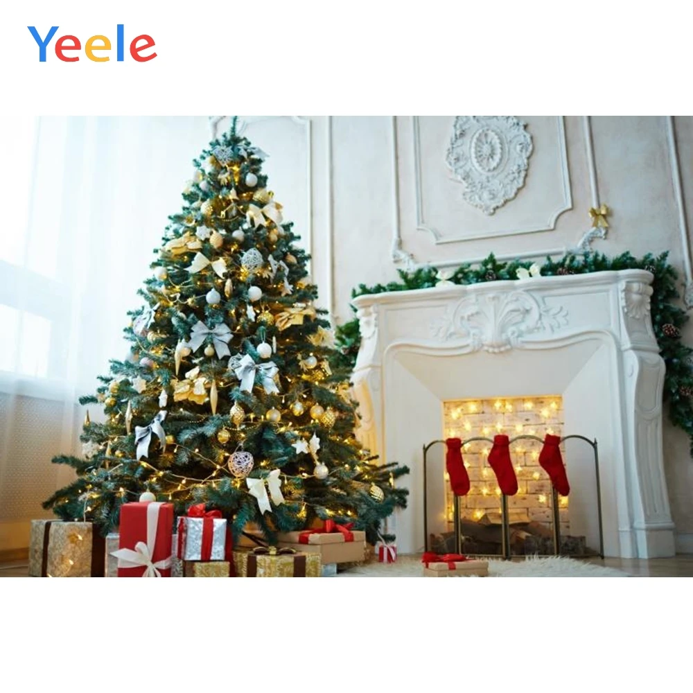 Фотофон для студийной фотосъемки с изображением рождественской елки носков камина подарков занавесок