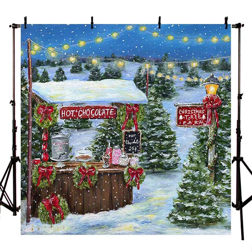 Фотофон Mehofond зима Рождество Горячий Шоколад снег сосна дерево дети семейный портрет Фотостудия