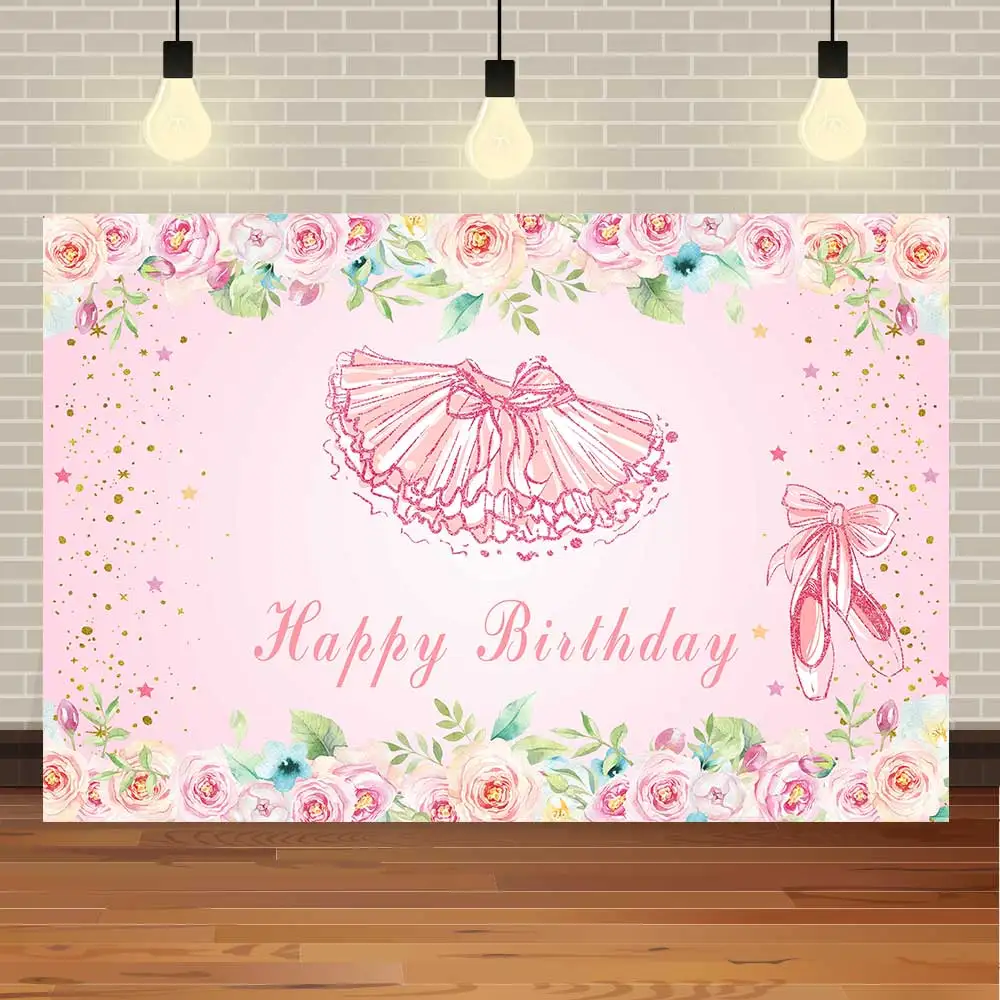 Фотофон NeoBack с днем рождения Принцесса Балерина акварель розовый цветок детский душ фотография