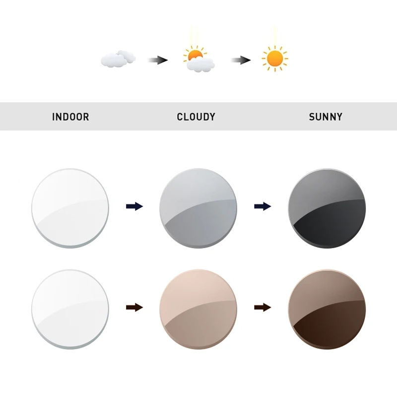 Фотохромные линзы для очков серая зеленая коричневая розовая фиолетовая синяя серия 1,56 1,61 1,67 по рецепту для близорукости и дальнозоркости