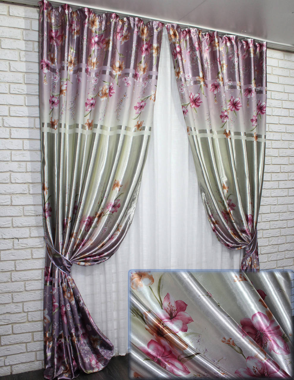 Фотошторы (2шт. 1,5х2,7м.) с цветочным принтом. Код 823ш 30-608, Фиолетовый