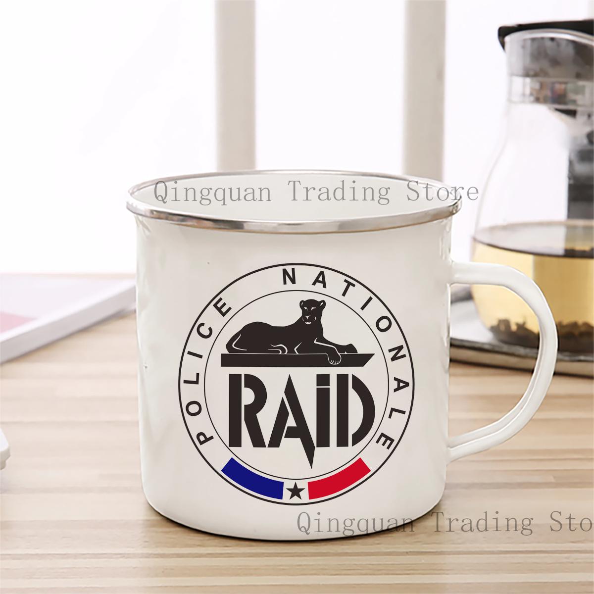 Франция Полиция Черные пантеры Эмалированная кружка Кофейная кружка 11 унций Керамическая Кофе Чай Какао Чашка Ручка Чашка для чая Cup