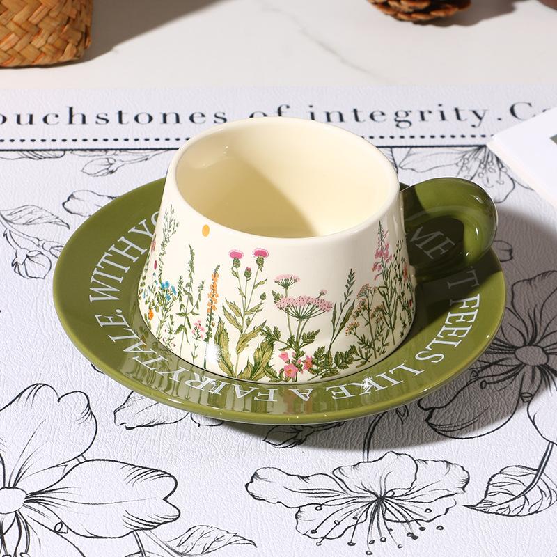 Французская Классическая Цветочная Кофейная Чашка и Блюдце Креативный Сувенир Керамическая Чашка Ретро Изысканная Банкетная Чайная Чашка с Блюдцем 260ML